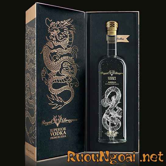 – Royal Dragon Vodka Imperial – Là bậc thầy điêu khắc, một kiệt tác của riêng mình. Sự kết hợp giữa phong thái mạnh mẽ của Rồng và sự sang trọng của vàng lá 23 carat, thì đây chính là tác phẩm tuyệt vời dành cho ai sở hữu nó.